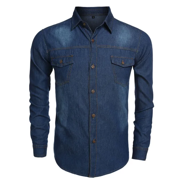 Jual Baju Kemeja Pria Lengan Pajng Jeans Keren Ori Wash Pakaian