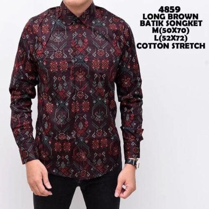 New Kemeja Songket Batik Pria Pakaian Lengan Panjang Cowok Baju